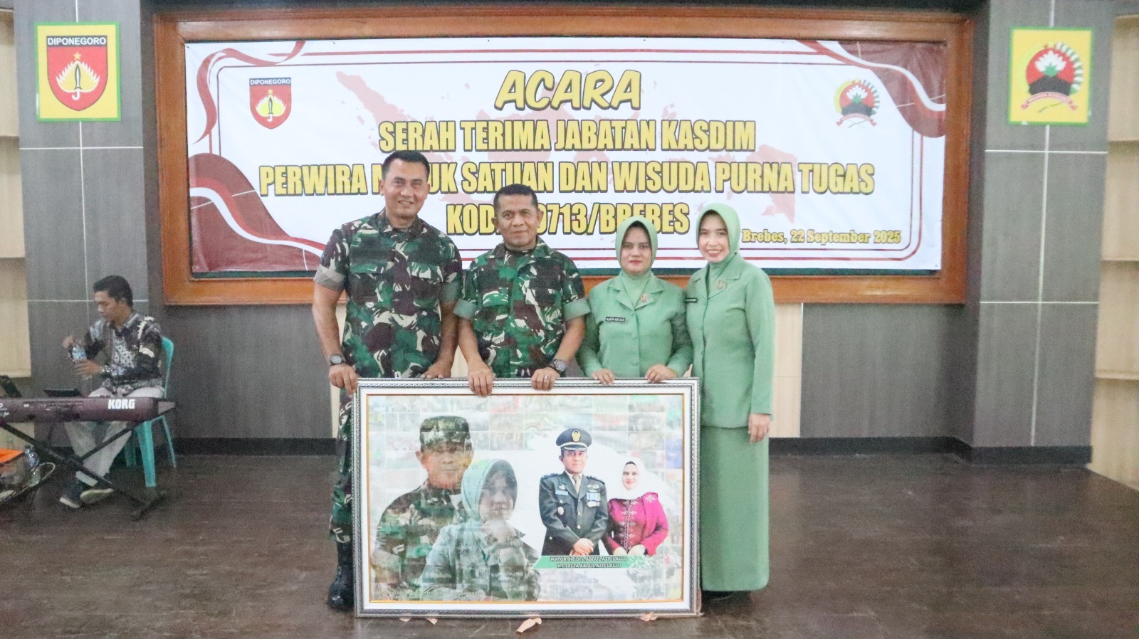 Brebes, Detektif SQUAD II Komandan Kodim 0713/Brebes, Letkol Infanteri Sapto Broto, S.E., M.Si pimpin Acara Serah Terima Jabatan Kasdim, Perwira Masuk Satuan dan Wisuda Purna TNI Kodim 0713/Brebes di Aula Jenderal Soedirman 107 Brebes. Senin (22/09/2025).