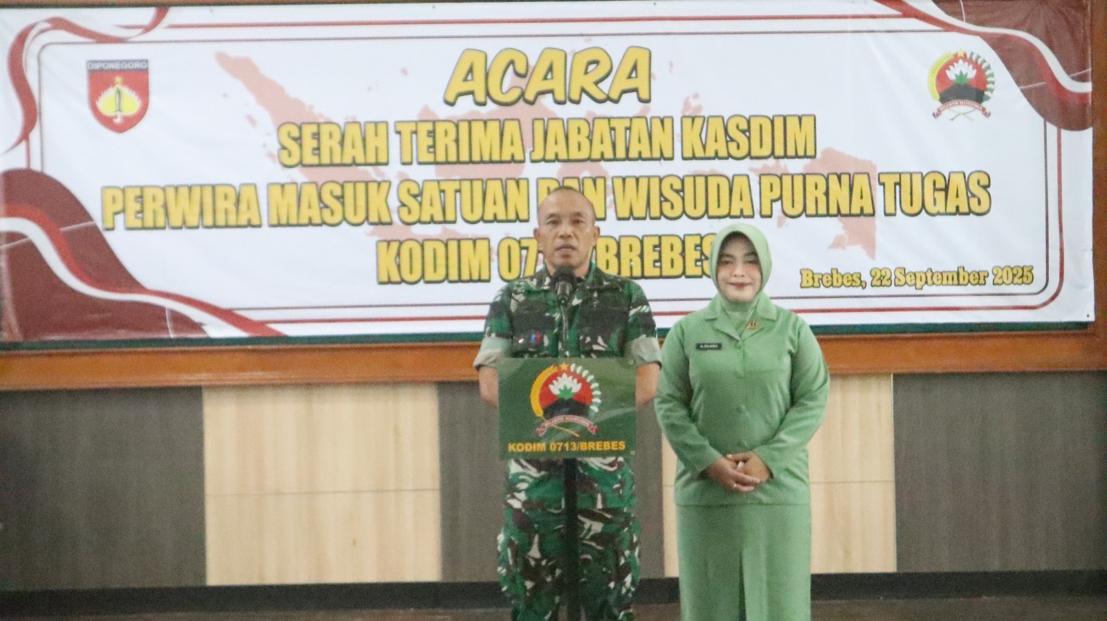 Brebes, Detektif SQUAD II Komandan Kodim 0713/Brebes, Letkol Infanteri Sapto Broto, S.E., M.Si pimpin Acara Serah Terima Jabatan Kasdim, Perwira Masuk Satuan dan Wisuda Purna TNI Kodim 0713/Brebes di Aula Jenderal Soedirman 107 Brebes. Senin (22/09/2025).
