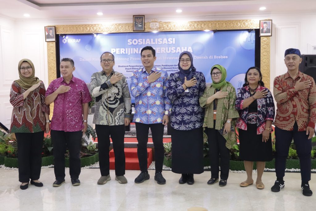 “Kabupaten Brebes memiliki potensi ekonomi kreatif yang sangat besar, seperti industri UMKM, baik dari makanan (telur asin, bawang merah), minuman, kerajinan (batik salem), maupun pariwisata. Untuk mengembangkan potensi ini, kita perlu meningkatkan pemahaman pelaku usaha ekraf mengenai pentingnya perizinan berusaha berbasis risiko melalui Sistem Online Single Submission (OSS) dan Nomor Induk Berusaha (NIB). Sosialisasi ini merupakan salah satu langkah strategis yang harus kita dorong agar meningkatkan daya saing melalui legalitas usaha.”