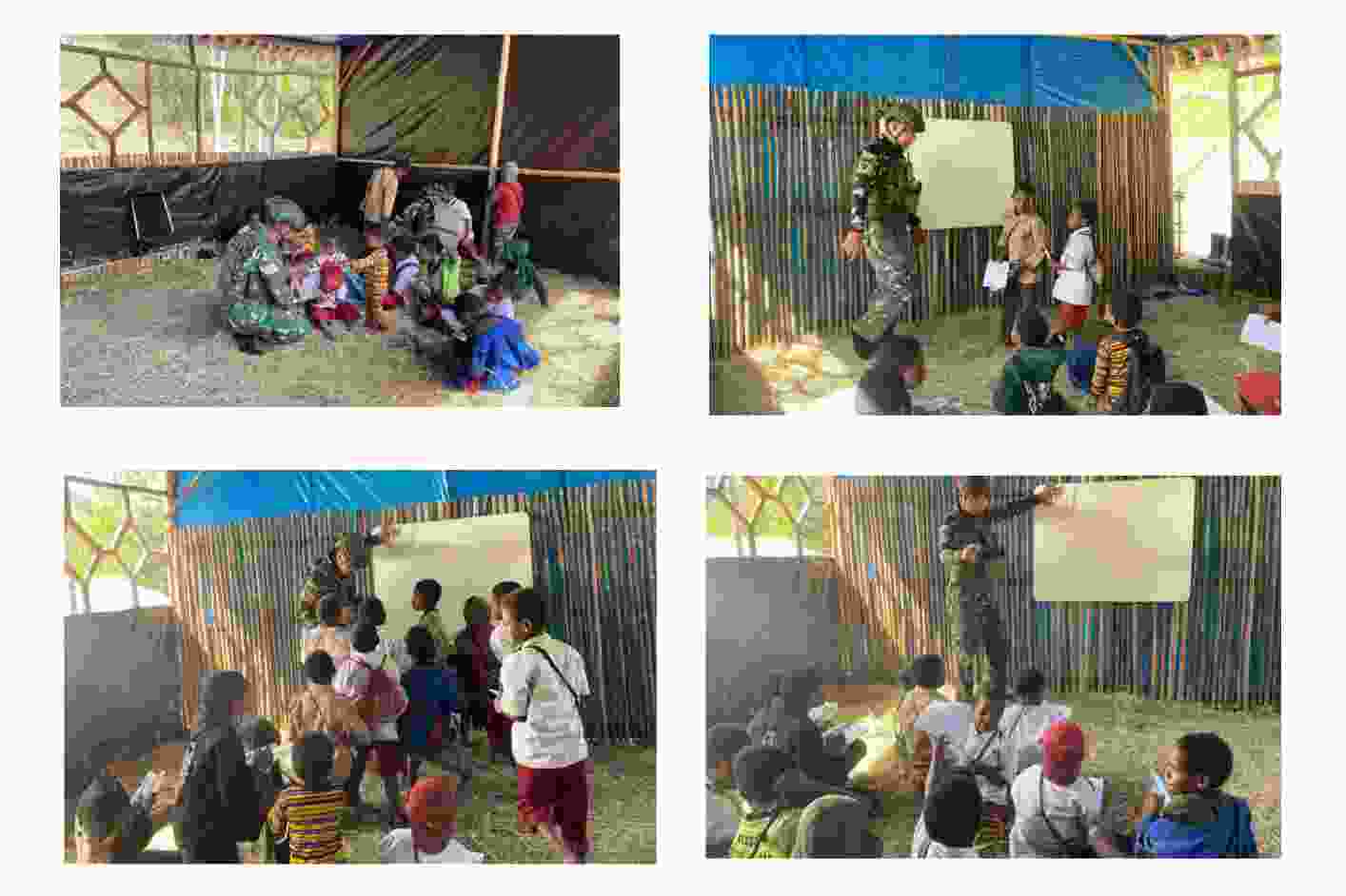 Anak-anak terlihat sangat antusias mengikuti setiap sesi pelajaran. Mereka dengan gembira menjawab pertanyaan, membaca bersama, dan menyanyikan lagu-lagu nasional. Suasana kelas yang penuh tawa dan semangat ini mencerminkan kehangatan dan eratnya hubungan antara TNI dan masyarakat Papua.