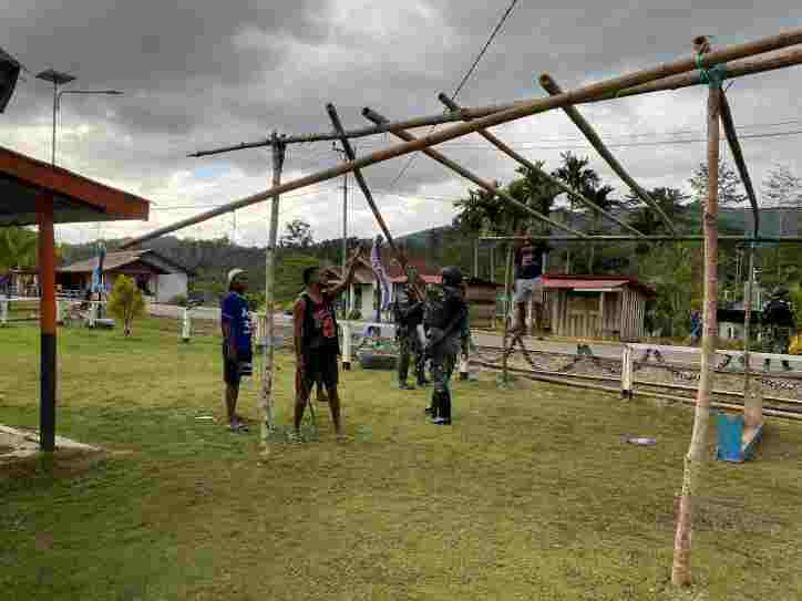 TAHOTA, detektifsquad.com – 20 Desember 2025 – Wujud nyata kemanunggalan TNI dengan rakyat kembali ditunjukkan melalui kegiatan gotong royong persiapan perayaan Natal di Distrik Tahota. Prajurit TNI AD bersama masyarakat setempat bahu-membahu melaksanakan pembangunan dan penataan sarana pendukung gereja sebagai persiapan menyambut Hari Raya Natal.