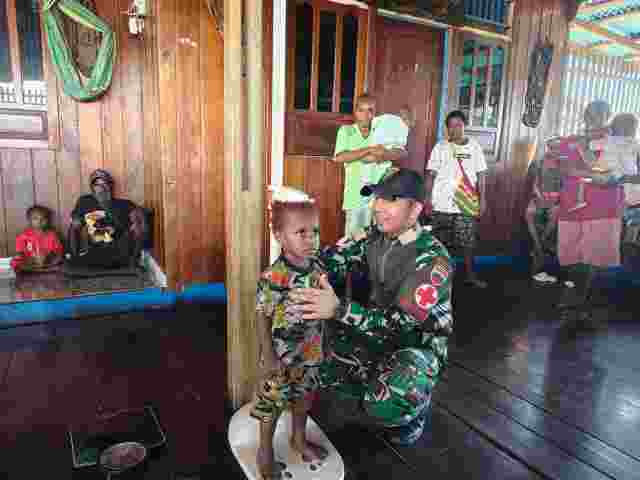 ASMAT –detektifsquad.com,- Personel Pos Suator Satgas kewilayahan Yonif 123/Rajawali bersama tenaga medis Puskesmas Distrik Suator melaksanakan kegiatan Pos Pelayanan Terpadu (Posyandu) serta pembagian kelambu kepada masyarakat, Selasa (06/01/2026), bertempat di Kampung Binam dan Kampung Emnam, Distrik Suator, Kabupaten Asmat.