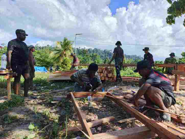 MANOKWARI UTARA, 23 April 2026 – Kegiatan TNI Manunggal Membangun Desa (TMMD) ke-128 yang dilaksanakan oleh Kodim 1801/Manokwari terus menunjukkan progres yang signifikan. Hingga hari ini, Satgas TMMD bersama masyarakat setempat tengah menggenjot pengerjaan sasaran fisik utama berupa pembangunan rumah layak huni.