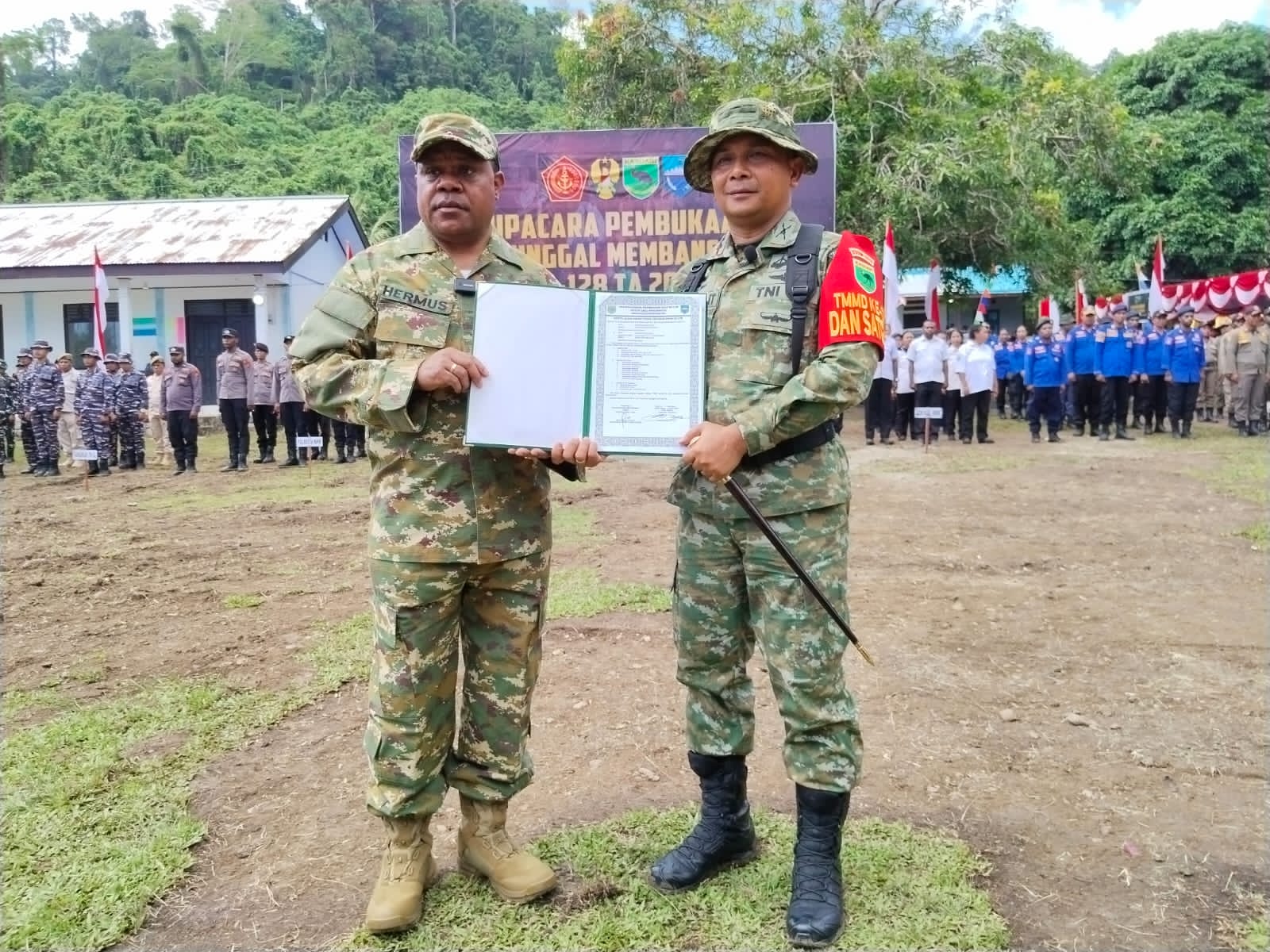 Dansatgas TMMD Ke-128, Dandim 1801/Manokwari Letkol Inf Davit Sutrisno Sirait, S.E., turut hadir bersama para unsur pimpinan satuan yang terlibat dalam pelaksanaan TMMD.
